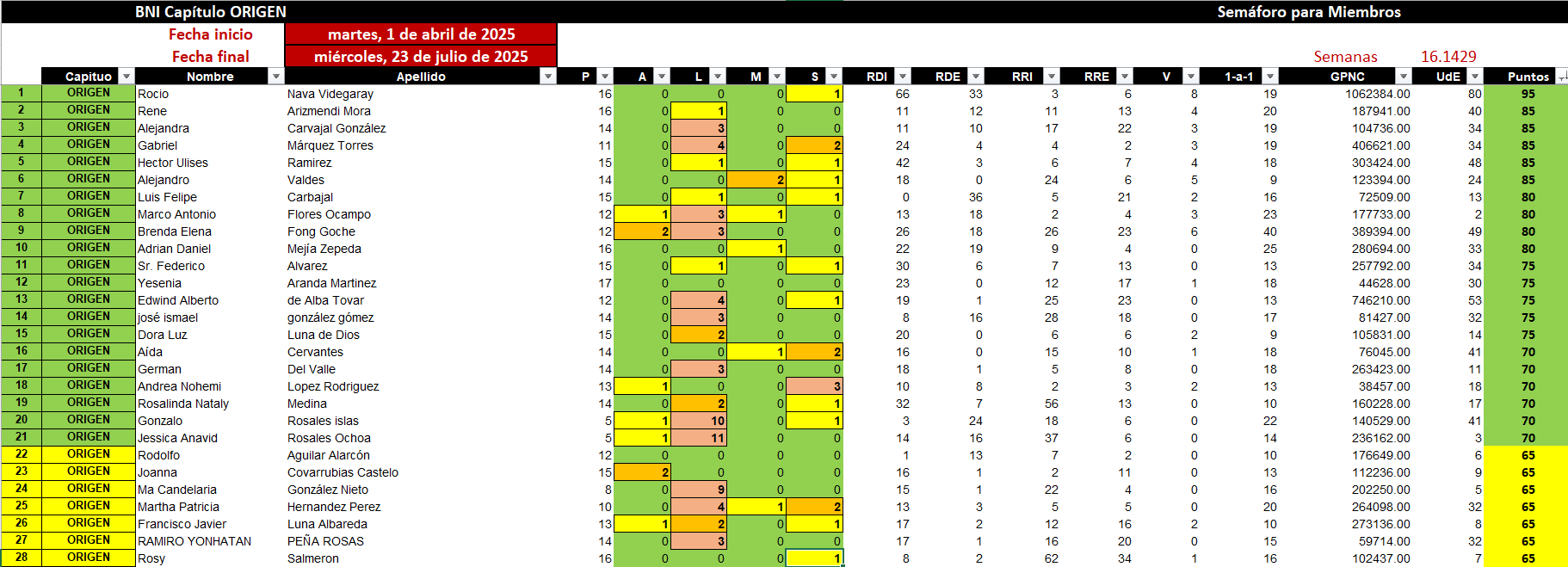 Para garantizar que nuestros resultados se mantengan actualizados, por favor, recuerden cargar su actividad semanal en BNI Connect.”